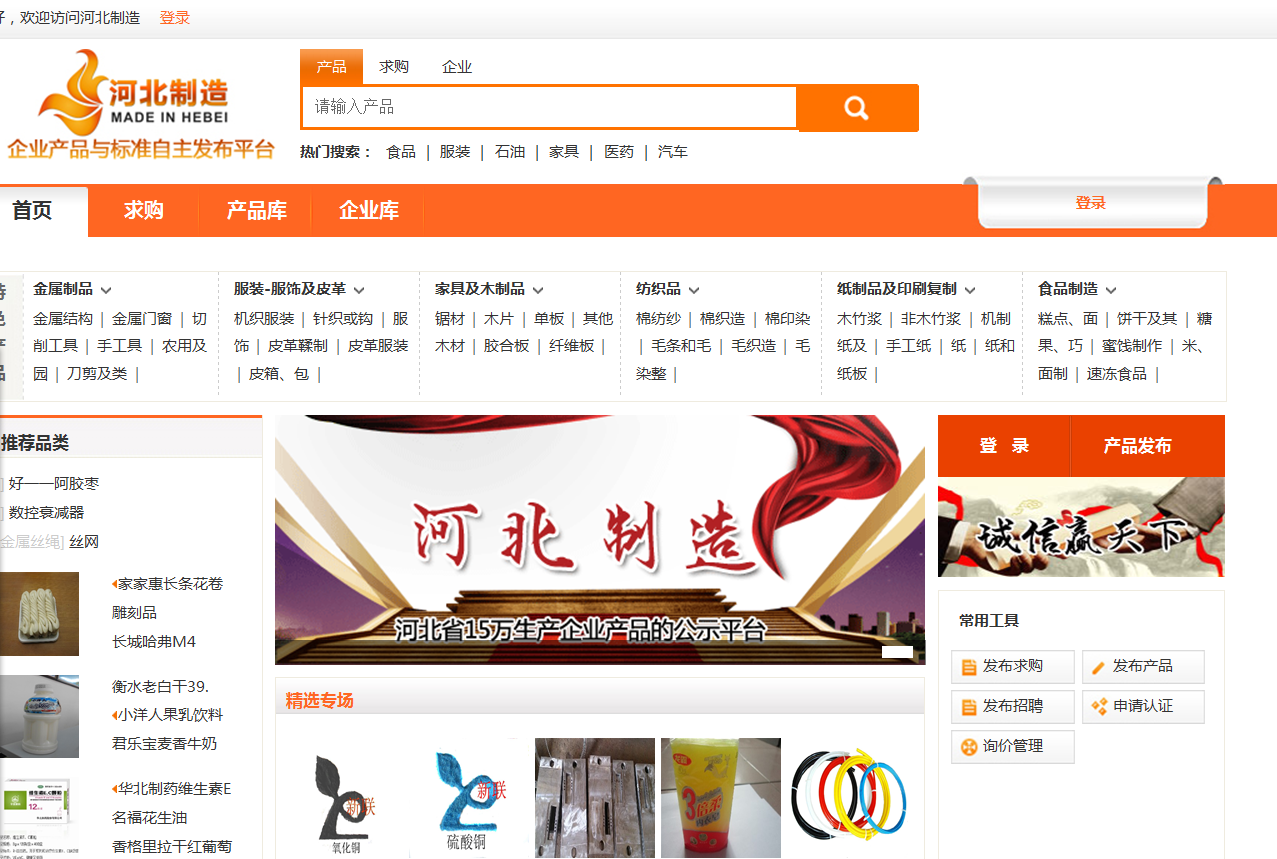 2015年1月29日,公司做為河北省誠信企業(yè),非常榮幸的被納入“河北制造企業(yè)產(chǎn)品與標(biāo)準(zhǔn)自主發(fā)布平臺”互聯(lián)網(wǎng)誠信網(wǎng)站(www.v360v.com備案號:冀ICP備05014994號-4),此網(wǎng)站是由河北省組織機(jī)構(gòu)代碼管理中心為貫徹落實(shí)國務(wù)院《質(zhì)量發(fā)展綱要》 “要夯實(shí)質(zhì)量發(fā)展基礎(chǔ),要搭建以組織機(jī)構(gòu)代碼實(shí)名制為基礎(chǔ)、以物品編碼管理為溯源手段的質(zhì)量信用信息平臺”,支持河北省傳統(tǒng)產(chǎn)業(yè)轉(zhuǎn)型升級、發(fā)展壯大先進(jìn)制造業(yè),促進(jìn)質(zhì)量提升、質(zhì)量創(chuàng)新而創(chuàng)建,它是生產(chǎn)企業(yè)之家。