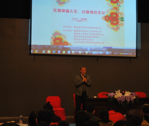 本次講座由河北省政協(xié)委員、秦皇島市工商聯(lián)副會(huì)長(zhǎng)、秦皇島金維達(dá)機(jī)械有限公司董事長(zhǎng)、“善人道”團(tuán)隊(duì)隊(duì)員――侯維真老師及其團(tuán)隊(duì)全程策劃,侯老師及其團(tuán)隊(duì)成員,為大家感情真摯、言辭懇切地分享了自己學(xué)習(xí)傳統(tǒng)文化的真知灼見(jiàn),與會(huì)人員無(wú)不受益,會(huì)場(chǎng)掌聲此起彼伏、高潮迭起;動(dòng)情之處,會(huì)場(chǎng)許多人一起抽泣、哽咽,受益匪淺?;顒?dòng)中,大家還一起誦讀了中華傳統(tǒng)典籍《弟子規(guī)》,欣賞了習(xí)近平總書(shū)記作詞的歌曲《志成學(xué)子之歌》(習(xí)近平主席寄語(yǔ)),滿滿的正能量在會(huì)議大廳流淌。午休時(shí)間,孝文化協(xié)會(huì)還為大家獻(xiàn)上了文藝表演,以優(yōu)美的舞蹈、動(dòng)人的歌聲、激情的朗誦、幽默的三句半等等文藝方式演繹著中國(guó)傳統(tǒng)文化,內(nèi)容精彩、形式多樣,倍受觀眾喜愛(ài),贏得了一次又一次熱烈的掌聲!
