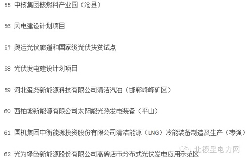 北極星電力網(wǎng)了解到,河北省近日公示2015年省重點(diǎn)項(xiàng)目名單,涉及電力項(xiàng)目20余項(xiàng),電力項(xiàng)目分別為: