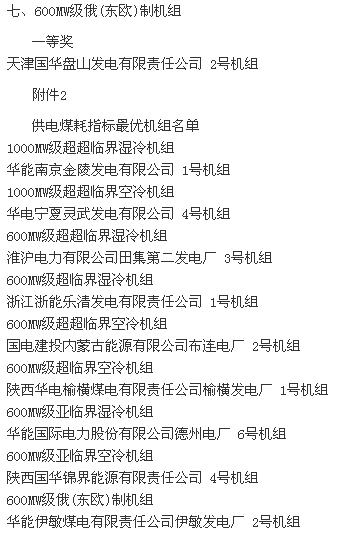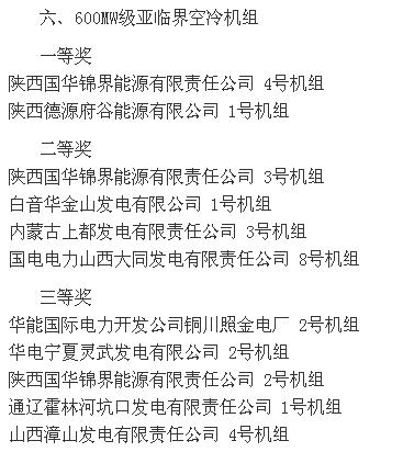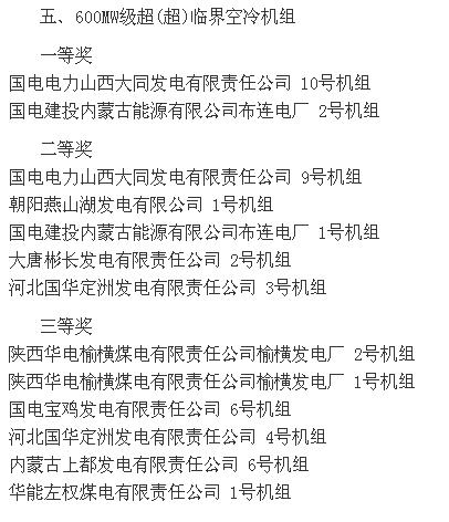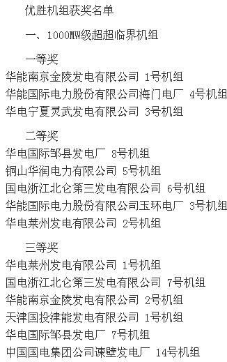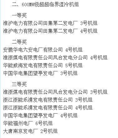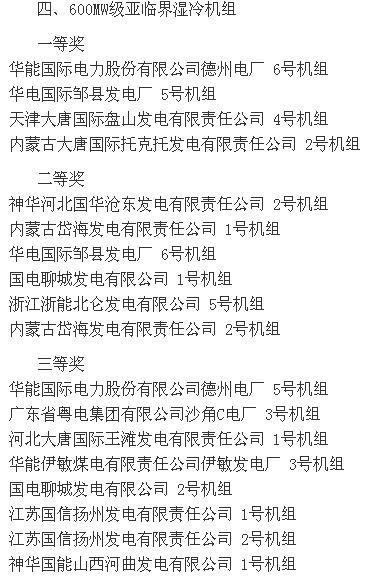 2015全國(guó)火電600MW級(jí)機(jī)組年度競(jìng)賽結(jié)果