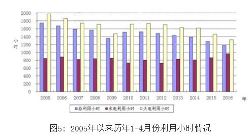 1-4月份,全國發(fā)電設(shè)備累計平均利用小時1180小時,同比降低97小時。