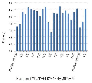 1-4月份,全國制造業(yè)用電量9225億千瓦時,同比下降0.9%,增速比上年同期低0.7個百分點。4月份,全國制造業(yè)用電量2557億千瓦時,同比增長0.8%;制造業(yè)日均用電量85.2億千瓦時/天,分別比上年同期和上月增加0.7億千瓦時/天和9.2億千瓦時/天。