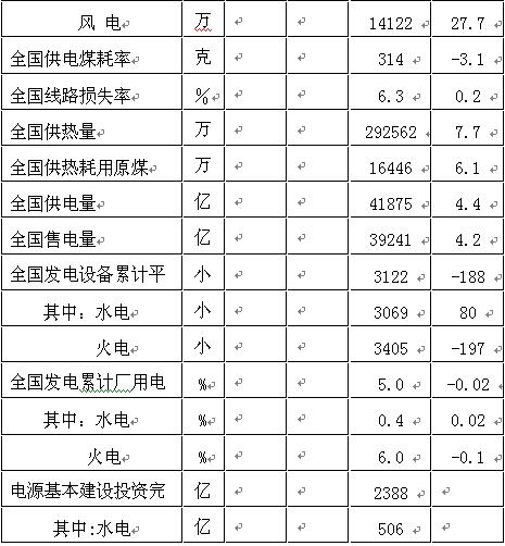 全國(guó)電力工業(yè)統(tǒng)計(jì)數(shù)據(jù)一覽表