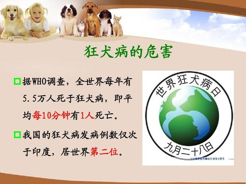 據(jù)世界衛(wèi)生組織在報告披露,狂犬病遍布于全世界,每年全球有55000人死于狂犬病,即每10分鐘就有1人死亡。此外,亞洲和非洲有1000萬人在被可能患有狂犬病的狗咬傷后,接受狂犬病疫苗注射。為了喚起全球的重視,在國際狂犬病控制聯(lián)盟的倡議下,世界衛(wèi)生組織、世界動物衛(wèi)生組織及美國疾病預(yù)防控制中心等共同發(fā)起并確定,每年的9月28日為世界狂犬病日。通過設(shè)立世界狂犬病日,將集合眾多的合作者和志愿者,群策群力,盡快使狂犬病成為歷史。第一個“世界狂犬病日”活動之后,各國紛紛開展相應(yīng)宣傳活動,相關(guān)的各項活動獲得里程碑式的成功,將全球的狂犬病預(yù)防和控制工作向前推進(jìn)了一大步。