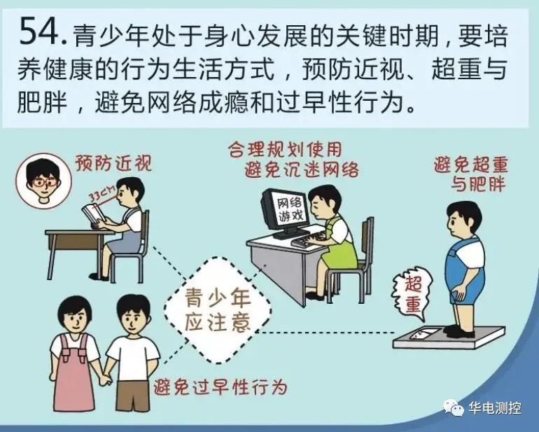 青少年是祖國的未來,提高他們的健康素養(yǎng),是實現(xiàn)健康中國戰(zhàn)略目標(biāo)的關(guān)鍵。《中國公民健康素養(yǎng)—基本知識與技能》第二部分,關(guān)于“健康生活方式與行為”,其中第五十四條強調(diào):“青少年處于身心發(fā)展的關(guān)鍵時期,要培養(yǎng)健康的行為生活方式,預(yù)防近視、超重與肥胖,避免網(wǎng)絡(luò)成癮和過早性行為。”