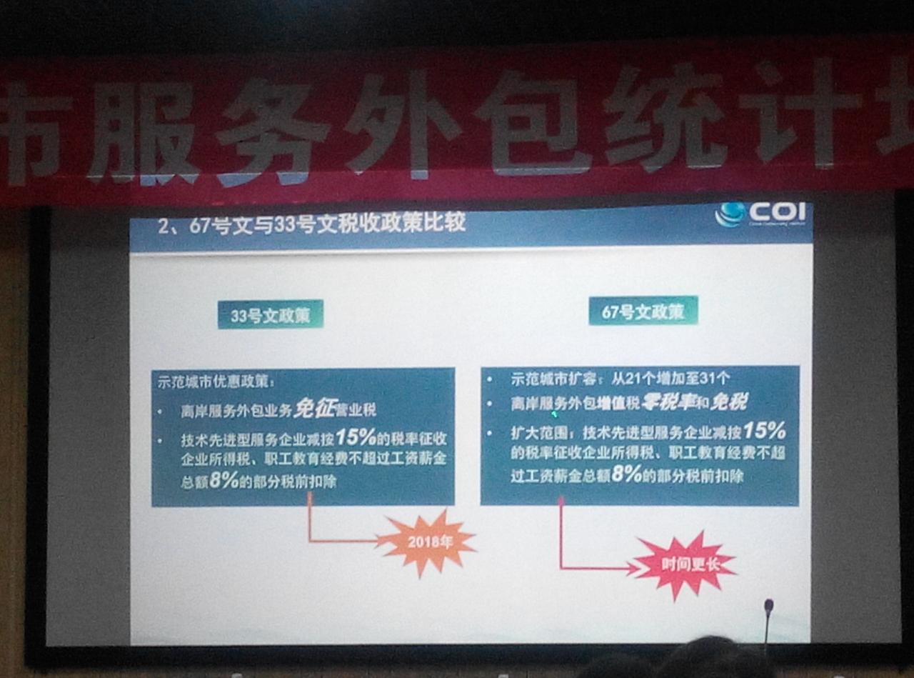 通過本次培訓清晰了什么是服務外包;服務外包的分類:2014年現行統(tǒng)計標準分為三個門類(ITO信息技術外包、BPO業(yè)務流程外包、KPO知識流程外包),九個大類(軟件研發(fā)外包、信息技術服務外包、運營和維護服務、內部管理外包服務、業(yè)務運營外包服務、供應鏈外包服務、商務服務外包、技術服務外包、研發(fā)服務外包),35個中類;服務外包與服務貿易之間的關系等。服務外包產業(yè)的發(fā)展在國家政策《國務院關于促進服務外包產業(yè)加快發(fā)展的意見》國發(fā)[2014]67號文件(離岸服務外包增值稅零稅率和免稅,擴大范圍:技術先進型服務企業(yè)減按15%的稅率征收企業(yè)所得稅,職工教育經費不超過工資薪金總額8%的部分稅前扣除)的支持力度下,不斷成長提升。通過建立的有效溝通和營銷渠道,構建交易平臺,積極走出去,尋求與國際接軌的走向國際的策略,借助云計算、大數據等新技術融合共同發(fā)展。最后,主辦方秦皇島市商務局代表做了總結發(fā)言,還為大家精心準備了冷餐,就餐的同時大家相互交流,彼此相互了解。