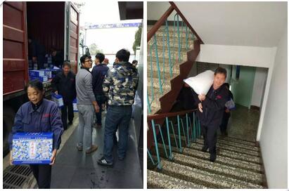 2016年10月22日(周六)早晨7點多鐘,管理部得知大米已經運達公司,立即通知華電家人們前來公司卸車領米。得到消息之后,大家立即行動,紛紛來到公司卸車搬運。眾人搬的搬、扛的扛,齊心協力把一袋袋、一箱箱沉甸甸的大米整齊有序地碼放到指定位置,經過一個多小時的搬運,500多件大米卸車搬運任務圓滿完成!