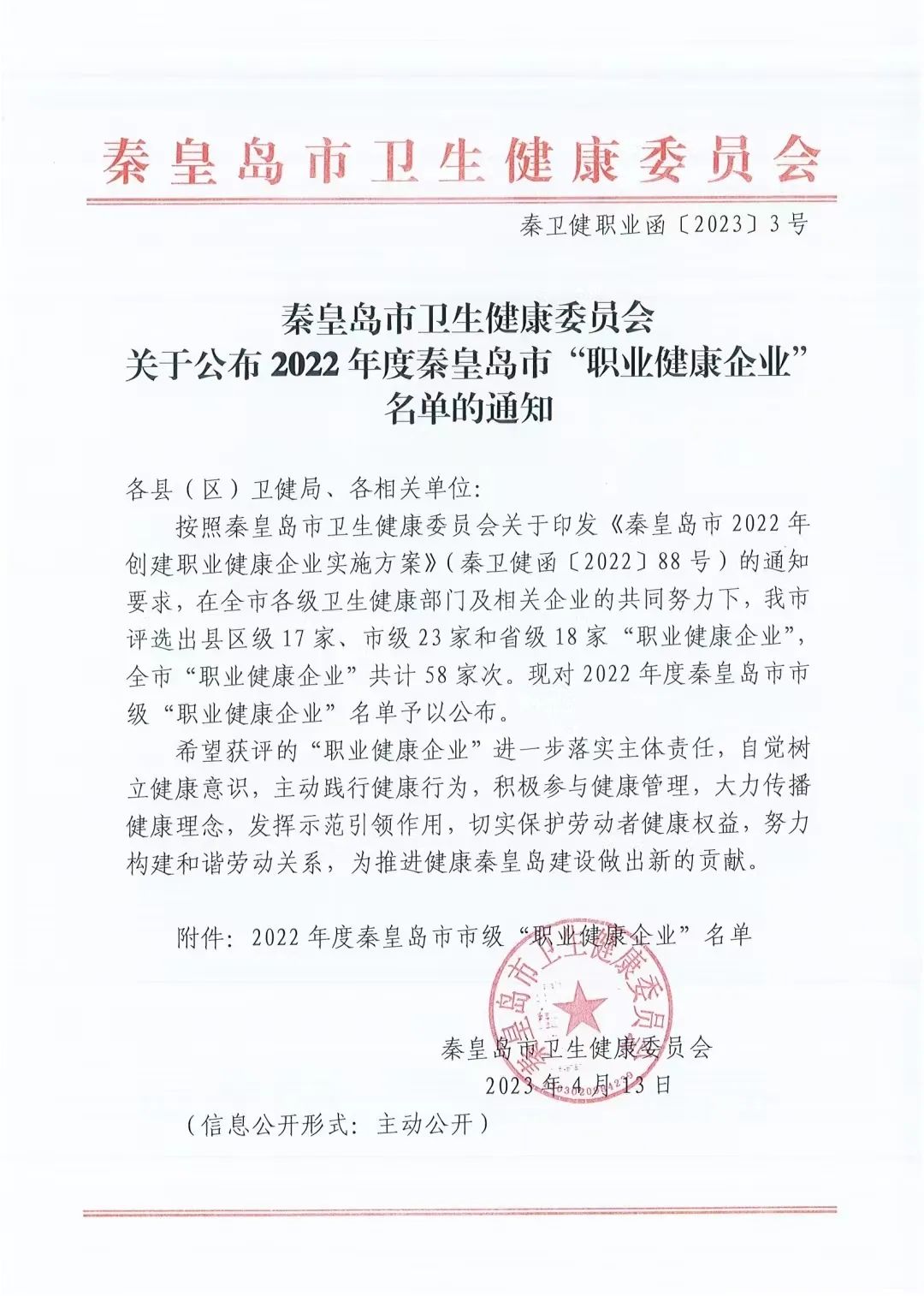 秦皇島華電測控設備有限公司獲評為2022年度秦皇島市職業(yè)健康企業(yè)” 2023-05-202023年4月21日,我公司獲悉來自秦皇島市衛(wèi)生健康委和秦皇島市海港區(qū)衛(wèi)生健康局的文件通知,秦皇島華電測控設備有限公司獲評為2022年度市級“職業(yè)健康企業(yè)”。為更好More