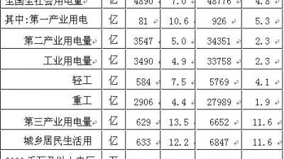 能源局公布3月份全社會用電量情況” 2017-04-174月14日,國家能源局發(fā)布3月份全社會用電量等數(shù)據。3月份,全社會用電量5139億千瓦時,同比增長7.9%。1-3月,全社會用電量累計14461億千瓦時,同比增長6.9%。分產業(yè)看,第一產業(yè)用電量203億千瓦時,同比增長10.1%;第二產業(yè)用電量999More
