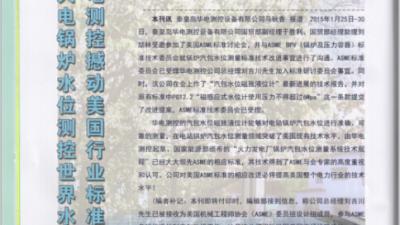 近日,秦皇島華電測(cè)控設(shè)備有限公司頻繁與美國(guó)ASME研討鍋爐汽包水位測(cè)量標(biāo)準(zhǔn)一事,受到業(yè)界廣泛關(guān)注。秦皇島企業(yè)家協(xié)會(huì)會(huì)刊2015年第1期,在第1頁(yè)協(xié)會(huì)動(dòng)態(tài)欄目發(fā)表一文,題為“華電測(cè)控撼動(dòng)美國(guó)行業(yè)標(biāo)準(zhǔn),搏擊火電鍋爐水位測(cè)More